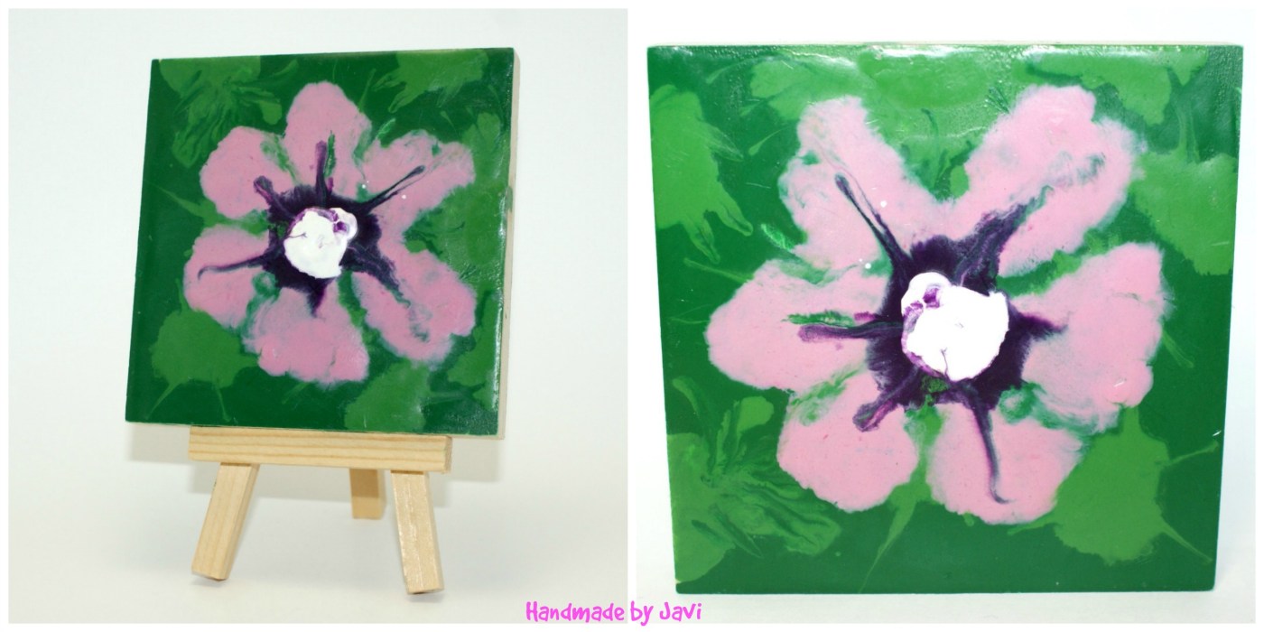 Crayon painting on miniature canvas. Total painting – 7″ x 5″ split into 4 mini paintings of 3.5″ x 2.5″ on mini easels. Gave these out at my wife’s Girl’s Night one night. (Yes, I’m the only guy invited Girls’ Night … helps that I make custom jewelry and cook … hehehe).
