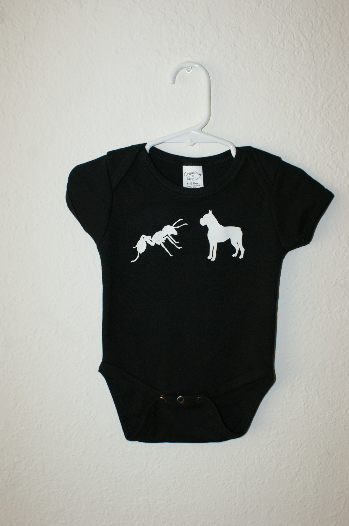 My baby’s first onesie – in honor of my brother-in-law. RIP Ant Dog. I bought the onesie, then designed, cut and applied the stencil.